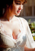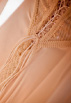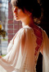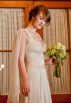 The bodice of this gown is vintage sequinned silk with a collar of vintage lace and braids. The skirt is antique satin silk and the sleeves are gathered vintage silk chiffon.